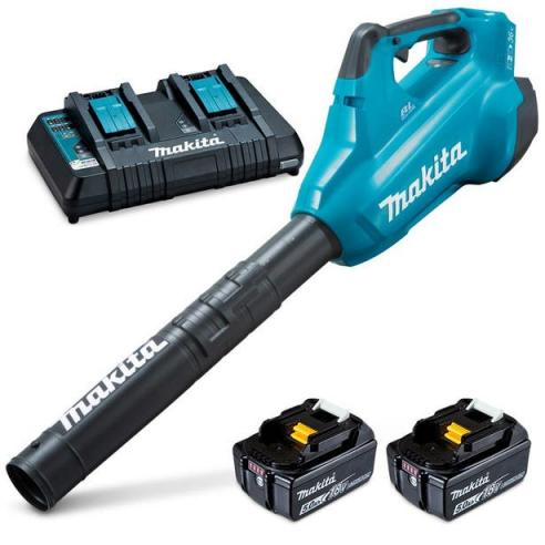 Variable Speed Control – 6-stage air volume / velocity selection by dial with variable control by trigger in each range Lock on button – operable from either side, locks the trigger on so the trigger does not need to be held 3 stage telescopic nozzle – with an adjustment range of 100mm Lightweight design – weighing only 4.0kg the blower can comfortably be used for extended periods of time Optimum grip to frame angle – provides optimum nozzle to ground angle for efficient sweeping operation Dual battery fuel gauge – indicates the power remaining in each battery 18Vx2 Brushless Motor – 36V of power and runtime without leaving the 18V LXT platform XPT – provides increased resistance to moisture and dripping water for use in harsh outdoor environments Specifications Noise 79.1dB Max. air velocity 27-54m/sec Max. air volume 6.9-13.4m³/min No load speed 11,400 – 21,500rpm Overall length 930mm Skin weight 2.8kg Weight (with battery) 4.0kg Voltage 36V (18Vx2)